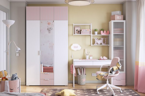 Габариты 1200х422х1900 мм обеспечат достаточное пространство для хранения одежды, белья и других предметов, а благородное белое дерево и розовая пудровая эмаль придают шкафу шарм и изысканность. Фасады из МДФ с фрезеровкой в виде вертикальных полос создают интересный и стильный акцент.