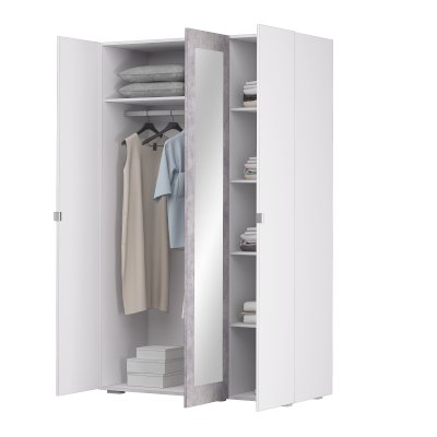 шкаф хороший. цвет чисто белый и вставка пол серый бетон. зеркала качественные.