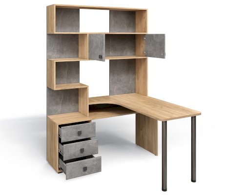 С таким столом вы приобретете удобное рабочее место, практически миниофис со всем необходимым.