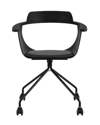 Лаконичное компьютерное кресло Doulton в современном стиле. Эта уникальная модель будет прекрасно смотреться как в высокотехнологичной обстановке хай-тек, так и в помещении, оформленном в скандинавском стиле. Спинка и подлокотники изготовлены из прочного PP-пластика, подушка на сиденье – из экокожи в черном цвете. Крестовина выполнена из металла, окрашенного порошковой краской в черном оттенке. Кресло оборудовано колесиками для более удобного пользования. Высота сиденья не регулируется. Максимальная нагрузка до 150 кг.