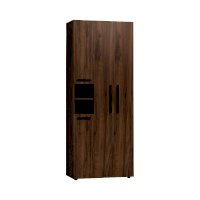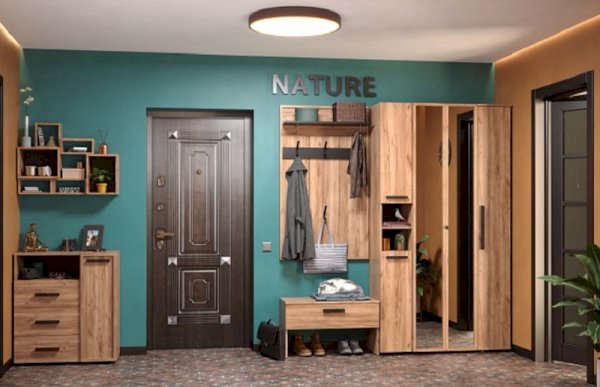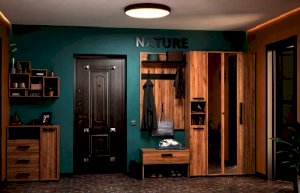 Nature 87 Шкаф для одежды и белья создаст все необходимые условия для хранения в прихожей верхней одежды и аксессуаров. В этом шкафу есть все необходимое для размещения верхней одежды: выдвижная штанга, верхняя полка, ряд регулируемых полок. Большая секция оснащена выдвижной штангой для развешивания пальто и курток на плечиках. Выдвижная штанга выдерживает вес до 10 кг. По желанию к модулю можно докупить светодиодную подсветку Nature 94, которая крепится под полку открытой ниши.