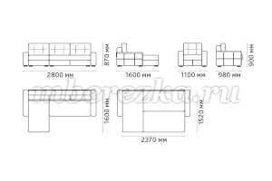 Размер дивана : 2800*1600*870 мм