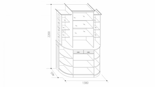 В-2 Витрина угловая с зеркалами МДФ матовый