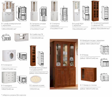 Модули В-9 и В-10/В-11 образуют сервант.