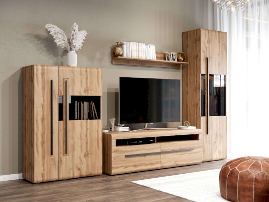 Двухдверный шкаф-витрина "Ницца" выполнен в популярных цветах Дуб Вотан и Дуб Винтерберг. Природные оттенки с рустикальной древесной текстурой принесут вашему интерьеру уютное тепло и комфорт.