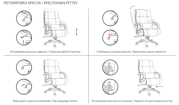 Тип механизма кресла: "топ-ган" качание с регулировкой под вес и фиксацией в 1 положении