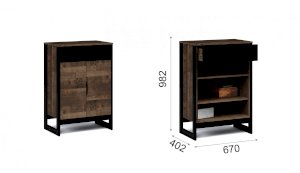Комод включает выдвижной ящик и шкаф с распашными дверями и полкой внутри
