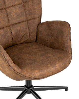 Мягкое сиденье с высокой поддерживающей спинкой анатомической формы подарит комфорт и уют. Прекрасно впишется в интерьер гостиной или столовой зоны. В качестве обивки используется искусственная замша – прочный и приятный на ощупь материал. Внутренняя часть спинки украшена геометричной строчкой в виде квадратов. Крестовина выполнена из металла в черном цвете и обеспечивает хорошую устойчивость. Удобные подлокотники и функция вращения добавят еще больше комфорта.