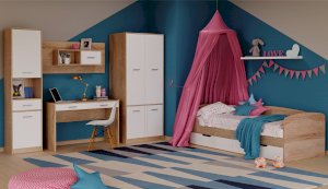 Пенал служит для хранения учебников, тетрадей и других письменных принадлежностей. В нем достаточно места, чтобы хранить не только предметы для учебы, но и одежду. Выдвижной ящик – отличное место для нужных мелочей, а в открытой полке можно поместить предметы декора или фоторамки. Белые фасады зрительно увеличивают пространство, добавляют света в комнату. Идеально компонуется со всеми модулями системы Стелс. Мебель выполнена из высококачественных экологичных материалов.
