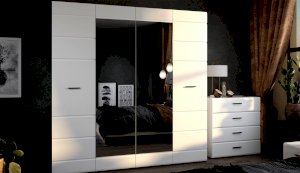 Стильный комод Йорк — оптимальное решение для спальни и гостиной. Горизонтальная фрезеровка фасадов, контрастные черного цвета ручки и задняя стенка из ХДФ, элегантный белый цвет— все это делает модель универсальной, позволяет сочетать ее с любой мебелью и отделкой. Блеск глянцевых фасадов High Gloss из МДФ наполняют комнату светом, делают ее просторнее. Ящики на телескопических направляющих, позволяют рационально использовать всё внутреннее пространство ящиков, обеспечивая удобный и легкий доступ ко всему содержимому. Мебель выполнена из экологически безопасных и надежных материалов.