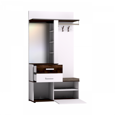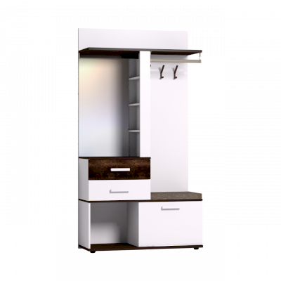 В прихожей Норвуд Белый декор используется в качестве основного цвета. При этом помещение не будет выглядеть просто, так как в дизайне модулей Норвуд используются контрастные горизонтальные поверхности и брашированные деревянные вставки в декоре Орех Шоколадный. Выразительное сочетание актуальных декоров не останется незамеченным и привнесет теплоту в атмосферу вашего дома.