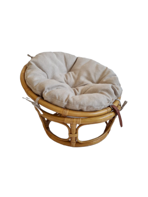 Стильное и удобное кресло Папасан из ротанга состоит из основания и чаши-кокона, которые скрепляются кожаными ремнями, подушка на завязках.