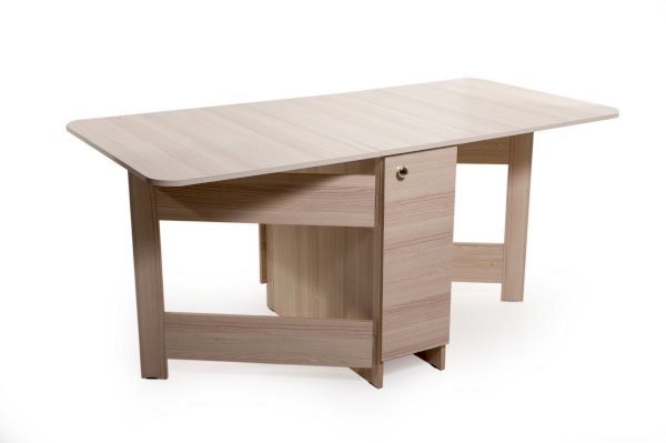 Преимуществом этого стола является наличие вместительных ящиков. В сложенном состоянии стол займёт совсем не много места и будет выполнять функцию комода или тумбы с ящиками.