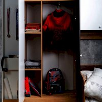 Между двумя высокими шкафами можно закрепить навесной шкаф.