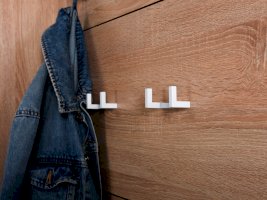 И вы только взгляните на эту лаконичную дизайнерскую фурнитуру: ручки на фасадах, крючки для одежды на вешалках. Она идеально дополняет внешний вид прихожей Куба.