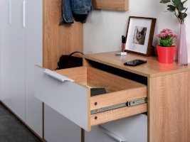 В линейке присутствуют модули с нестандартной конструкцией, которые не оставят без внимания узкие углы, повышая вместимость прихожей в разы.