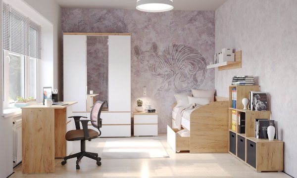 Крышка стола и фасады обработаны кромкой толщиной 1 мм, что делает работу за столом более комфортной и удобной. Применение интегрированной ручки на фасадах делает модель стильной и безопасной – дверцы открываются за профилированные выступы. Черная регулируемая ножка-опора.
