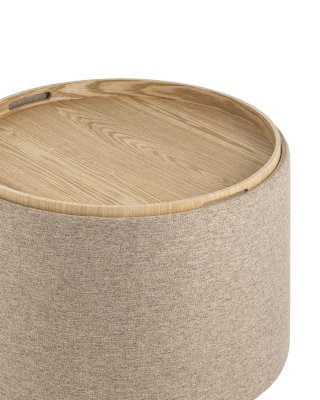 Мягкий пуф с ящиком станет незаменимым украшением интерьера. Он не только удобный, но и функциональный. Благодаря двухсторонней крышке, пуф можно трансформировать в журнальный столик. Столешница выполнена из светлого дерева с бортиками по краям и вырезными ручками для удобства, и безопасности при использовании. Крышка пуфика полностью съемная и при необходимости её можно использовать как поднос. Полезное дополнение - ящик для хранения различных мелочей, внутри обит тканью. Компактный и вместительный, такой пуфик наполнит пространство особым уютом и теплом. Подойдет для любого интерьера - как в классическом стиле, так и в современном.