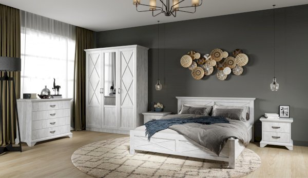 Кровать Лорена – это идеальное решение для интерьера квартиры или загородного дома в стиле неоклассика или прованс. Светлый цвет модного декора «Бетон пайн» с фактурой и рисунком натурального дерева добавят интерьеру уюта и умиротворенности. Высокое изголовье и изножье украшают декоративные крестообразные накладки и фигурный карниз.