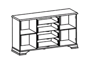 2 распашные двери и 4 выдвижных ящика на металлических роликовых направляющих, за каждой распашной дверью 2 ниши.