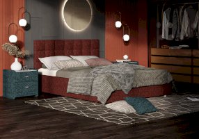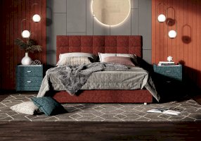 Элегантная интерьерная кровать с изголовьем, украшенным декоративными пуговицами, которые можно заменить на стразы. Модель изготовлена из ДСП. В комплект кровати входит кроватное основание. Каркас основания выполнен из металла, ламели - из берёзы. При необходимости в комплект можно включить подъемный механизм с бельевым ящиком.