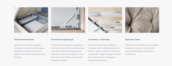 Лаконичная модель с изголовьем из объемных прямоугольников, сшитых между собой. Царги кровати выполняются по технологии съемного чехла. Модель изготовлена из ДСП. Обратная сторона изголовья обита спандбондом, но, при желании, её можно выполнить из основного обивочного материала. В комплект кровати входит кроватное основание. Каркас основания выполнен из металла, ламели - из берёзы. При необходимости в комплект кровати можно включить подъемный механизм с бельевым ящиком, который существенно увеличит объем хранения вещей, а так же позволит легко производить уборку пыли под кроватью.
