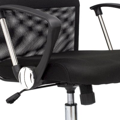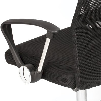 Спинка кресла выполнена из прочного сетчатого акрила. Материал обладает высокой воздухопроницаемостью, легко чистится, способен подстраиваться под физиологические изгибы спины, при этом сохраняет форму и не растягивается. Верхняя, наиболее подверженная износу, часть спинки изготовлена из экокожи. Помимо этого в области поясницы предусмотрена специальная вставка из эластичной ленты для дополнительной поддержки спины.