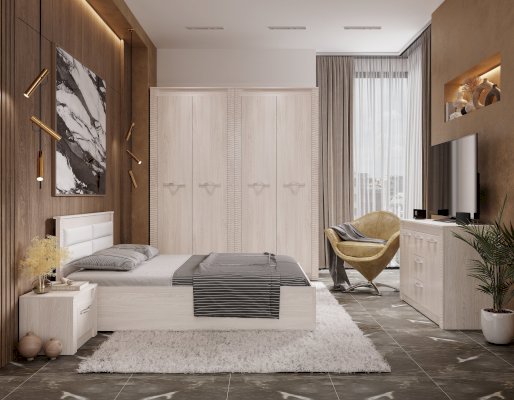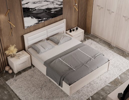 Двуспальная кровать Монако – это современная модель для комфортного сна и отдыха. Изделие выполнено из ЛДСП в приятном цвете ясень белый. Изголовье кровати имеет мягкие вставки и декоративную отделку. Модель оснащена подъемным механизмом, в нишах можно хранить сезонные вещи или постельные принадлежности.
