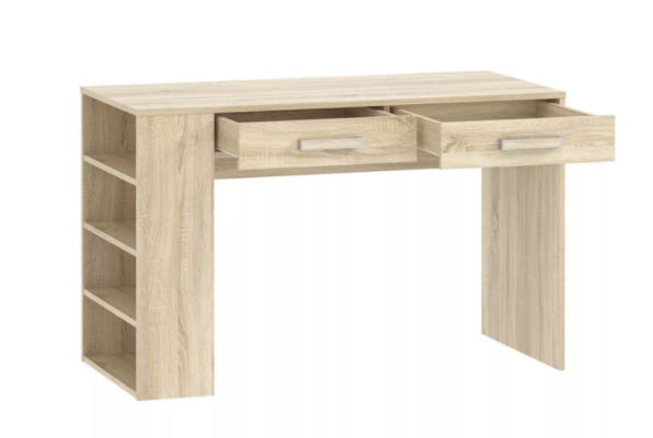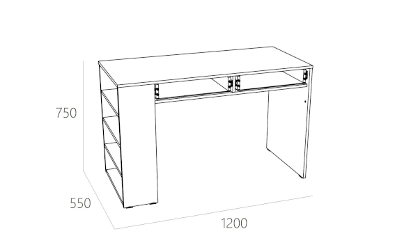 В конструкция стола предусмотрены боковые полочки, которые прекрасно выполняют роль мини-стеллажа, и где красиво и удобно разместятся учебники и любимые книжки. На рабочей поверхности модуля достаточно места для размещения не только письменных принадлежностей, но и ноутбука. По окончании занятий ребенок сможет убрать книги и тетради в выдвижные ящики для поддержания порядка на рабочем месте.