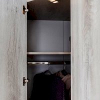 Эффективно организовать пространство в маленькой спальне поможет угловой шкаф. Стационарная штанга длиной 814 мм и полноценный стеллаж для белья внутри способствуют аккуратной организации вещей. Гладкие фасады и натуральный декор шкафа привнесут в комнату уют и теплоту. Шкаф оснащен беспроводным светодиодным светильником, который включается при открывании двери. Это особенно удобно, если нужно найти в шкафу вещи, не потревожив близких. Легкая установка на магнитное крепление не требует дополнительного сверления, прокладывания провода, подключения к сети. Регулируемые опоры компенсируют неровности пола. Шкаф необходимо обязательно крепить к стене на подвесы!