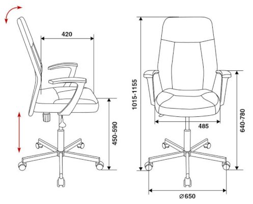 Высота с подлокотниками: 640-780