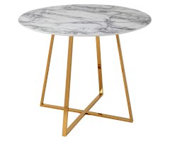 Лаконичный обеденный стол для кухни. Круглая столешница с рисунком белого мрамора выполнена из МДФ - прочного, экологически безопасного материала, который устойчив к перепадам температур и повышенной влажности. Поверхность столешницы декорирована рисунком белого мрамора, который идеально сочетается с металлическими ножками. Защитные подпятники на ножках предотвращают порчу напольного покрытия.