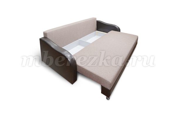 Модель «Леон» - это диван с бельевым ящиком, в котором можно хранить как постельные принадлежности, так и  другие вещи. Прочные металлические изогнутые ножки делают модель очень устойчивой. В комплект входят диванные подушки, позволяющие комфортно устроиться на диване. Они достаточно мягкие, поэтому их можно использовать для сна. Для удобства ухода за декоративными подушками наволочки съемные, что значительно облегчает уход за мебелью. Механизм трансформации «еврокнижка», используемый в диване, прост и надежен в эксплуатации.