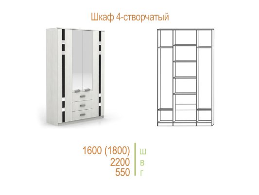 Шкаф четырехстворчатый 1800