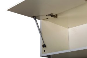 Фурнитура: Распашные фасады на четырёхшарнирных петлях, подъёмные фасады на газлифтах, выдвижные ящики на шариковых направляющих полного выдвижения.