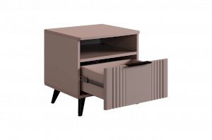 Благодаря компактным размерам тумба легко впишется в любой интерьер и гармонично сочетается с другими модулями спальни «Катрин». Выкатной ящик на шариковых направляющих обеспечивает удобный доступ к вещам, а нерегулируемые пластиковые опоры гарантируют стабильность конструкции.