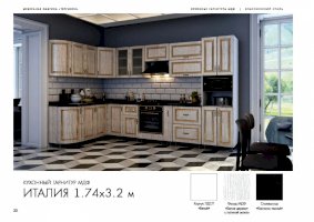 Кухня Италия изговаливается также в цветах белый/текстура платина+черная с патиной золото; серый/софт графит с патиной серебро; серый/фисташковый с патиной золото. Модули в этих цветовых решениях вы сможете найти в нашем интернет-магазине.