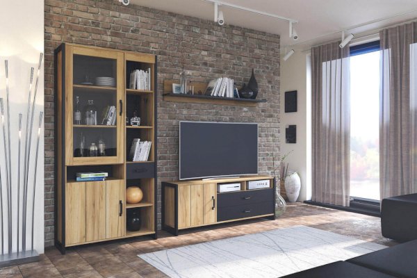 Тумба комбинированная Дуб золотой/Черный Техно 678210