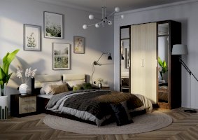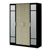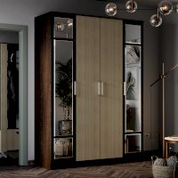 Разместить большой гардероб вы сможете благодаря четырёхстворчетому шкафу Фиеста. Модель выполнена из ЛДСП в комбинации цветов венге и лоредо, две створки являются зеркальными. Внутреннее наполнение состоит из большого центрального отделения со штангой для верхней одежды и вещей на вешалках. Справа и слева от платяной зоны находятся полки. Фасады оснащены эргономичными ручками. Шкаф всегда можно добавить другими модулями из одноименной мебельной серии.