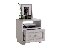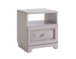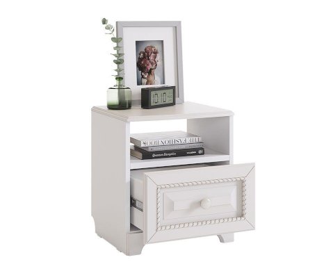 Прикроватная тумба – самый маленький, но в то же время незаменимый модуль серии «Белла». Используйте его как подставку для ночника, а также для хранения самых необходимых вещей как в открытой нише, так и в закрытом выдвижном ящике. Столешницу из МДФ украшает фрезеровка.