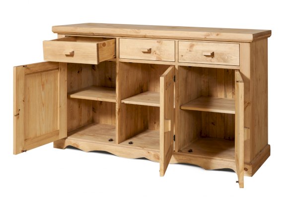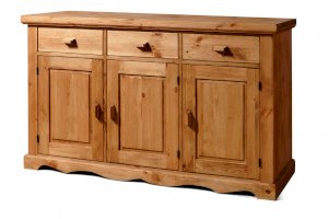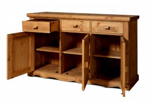 Тумба KOB33 - за каждой дверкой полка. 3 выдвижных ящика на деревянных полозьях.