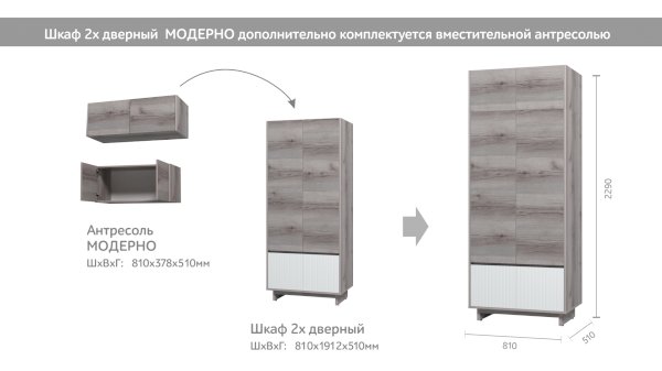Двухстворчатый шкаф MODERNO (Марибель) - за 18 982 руб. в Новороссийске. Купите на сайте novorossiysk.onlinemarketmebeli.ru или по телефону 8(800)505-30-63 уже сегодня! Уточнить наличие, комплектацию, актуальную цену можно бесплатно у менеджера ежедневно. Закажите Двухстворчатый шкаф MODERNO (Марибель) до конца акции! Доступна покупка в кредит, рассрочку. Доставим со склада или на заказ.
